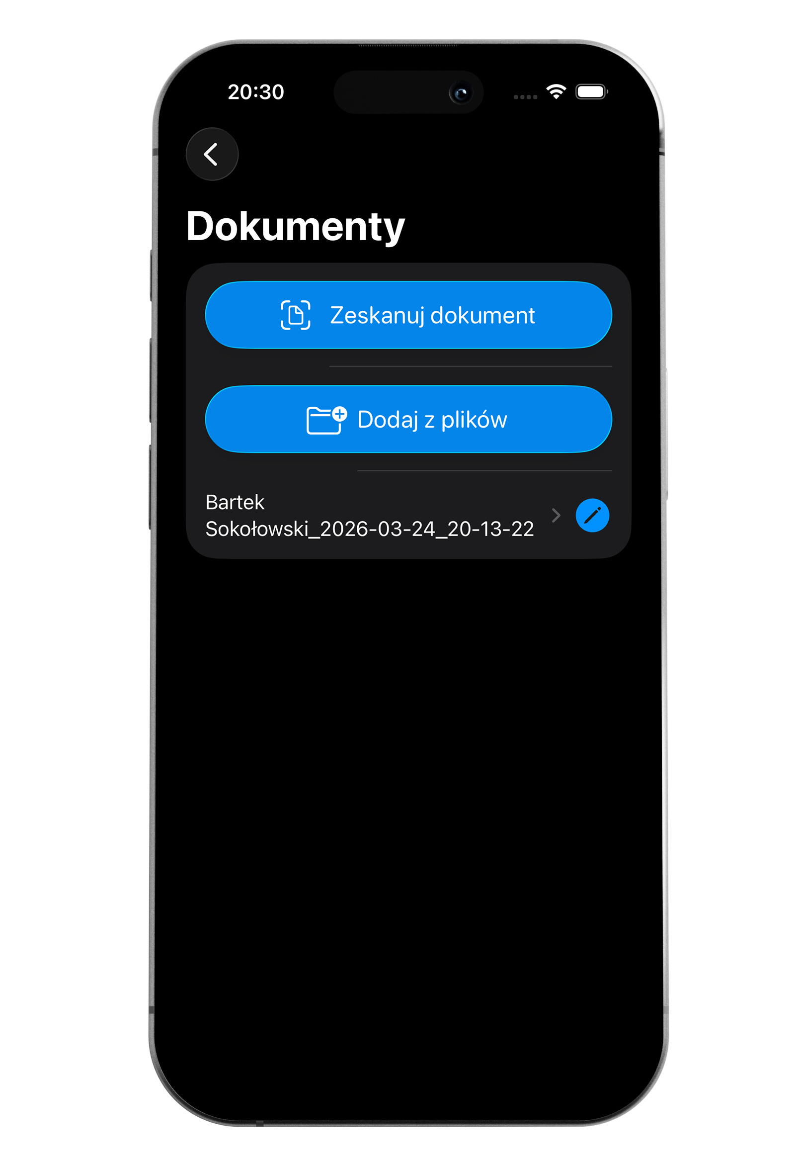 Excell Connect umożliwia dodanie do zlecenia dokumentacji PDF z plików lub skanu wewnątrz aplikacji.